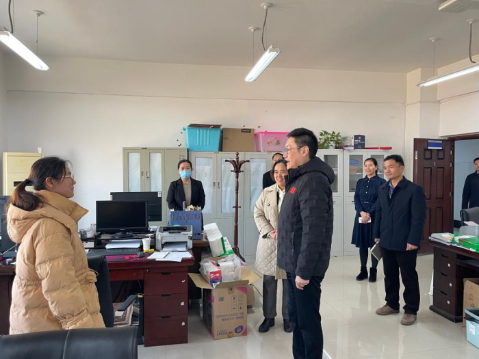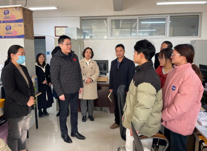 调研中,厉励深入公司各教研室与办公室,每到一处都与师生亲切交谈,详细询问大家工作、学习和生活情况,并向大家致以新年的诚挚问候和美好祝福。