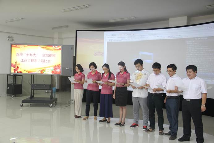 一首红歌诉述一段历史,一首红歌见证一段传奇。9月21日下午,工商管理系举办“喜迎十九大,颂歌献给党”红歌会,老师们组成5支队演出队伍,用歌声表达对中国共产党成立九十六周年暨建国六十八周年的祝福和对祖国的热爱。