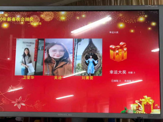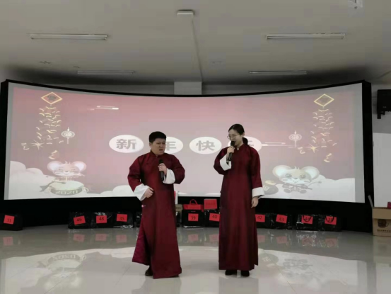 接下来,活动进入联欢会阶段,首先是德高望重的老教师们为大家带来了气势磅礴的诗朗诵《我骄傲,我是中国人》,随后王林老师《上海滩》独唱引人入胜,张毅飞老师和孙冬阳老师的小品《忍不了》延续了去年联欢会的欢乐,女老师们的舞蹈《阿育王》舞姿动人、精彩纷呈。最后,为庆祝2020年新年,全体老师分享了美味蛋糕,联欢会期间还穿插进行了多次抽奖活动,老师们欢声笑语喜迎新春,感受着公司大家庭的温暖,也纷纷祝愿公司双高建设顺利推进,公司明天更好美好。