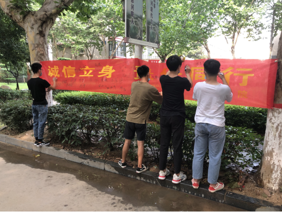 活动期间,球盟会领导带头学习《条例》,并组织公司师生教职工对《条例》进行深入学习,做到带头宣传《条例》、带头遵守《条例》、带头践行《条例》。此外,我们举办了诚信征文比赛,球盟会6个教研室择优推送12篇征文进行评比。为塑造良好的考风考纪,球盟会还举办了宣传条幅签名承诺书活动,由公司老师带头,专升本员工积极参与。