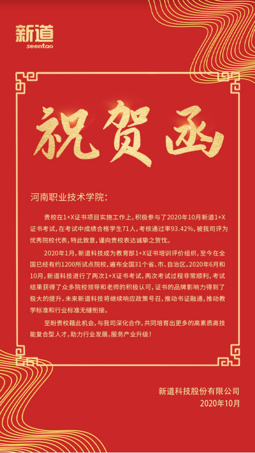 近日,从1+X业财一体信息化应用评价组织传来消息,公司会计专业员工考证通过率达到93.4%,各项指标在所有参加考试的院校中居于前列,受到评价组织表彰。