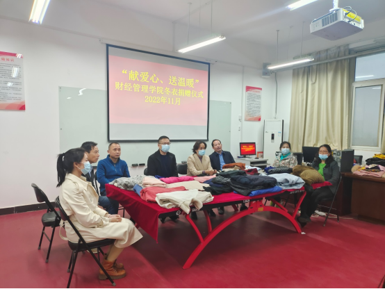随着天气逐渐变冷,同时由于疫情的原因,既要保证公司疫情防控的安全稳定,又要保证员工能在公司温暖过冬, 2022年11月11日,球盟会在行政楼518举行了冬衣捐赠活动,球盟会经理窦雪霞、党总支书记吴玉刚、副书记余湾以及相关老师参加了此次活动。