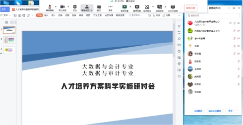 2022年12月1日下午,球盟会大数据与会计、大数据与审计两个教研室全体专职教师就本专业新版人才培养方案的科学实施问题进行线上专题研讨活动。