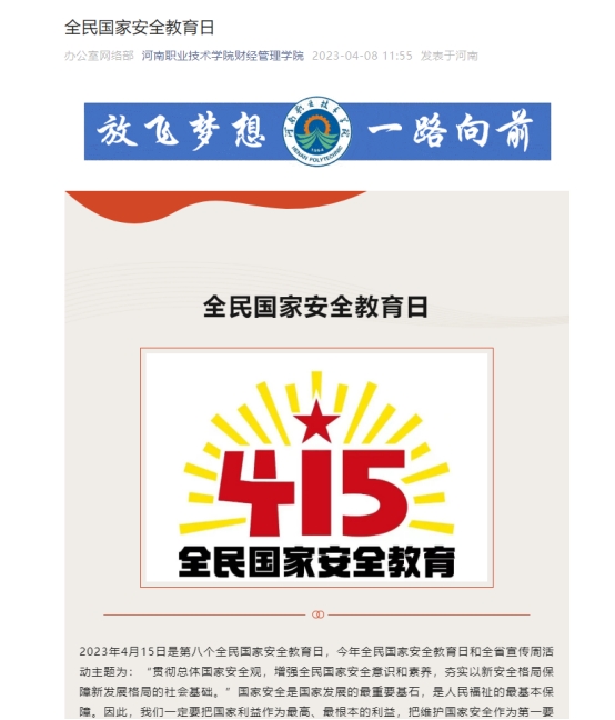 为进一步增强员工维护国家安全的意识,树立总体国家安全观,进一步推动总体国家安全观深入人心、落地生根,引导员工挺膺担当时代新人共筑国家安全防线,在全国第8个“全民国家安全教育日”到来之际,根据公司相关工作部署,公司开展了形式多样的国家安全教育日主题活动。