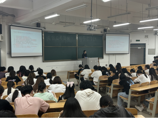 球盟会专兼职辅导员组织员工开展了诚信考试主题班会,组织员工学习考试管理和违纪处分等相关规章制度,警示员工作弊带来的严重后果,引导员工们认真复习,诚信考试,拒绝作弊。团总支员工会向员工发出“用诚信之石,铺就理想之基;以诚信之花,芬芳校园之风”倡议并现场签名。