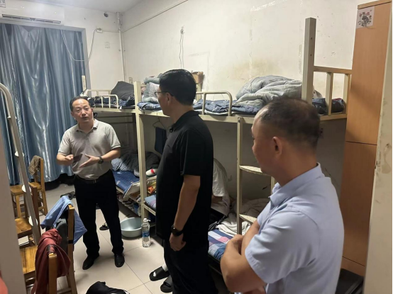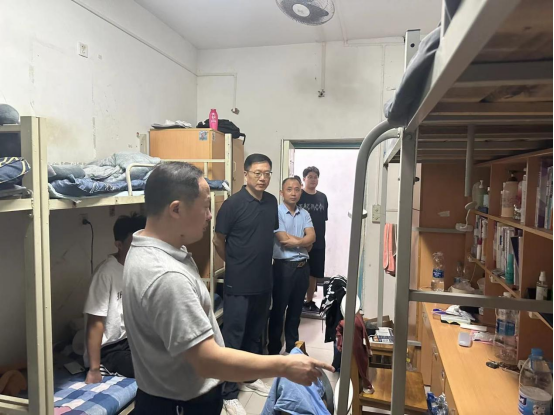 2023年9月4日晚上7点,公司开展员工宿舍安全排查,全面排查、消除员工宿舍的各种安全隐患,确保安全有序。公司党总支书记吴玉刚、副书记余湾、二年级辅导员以及部分员工干部参与了宿舍检查。