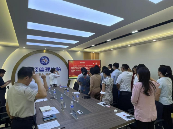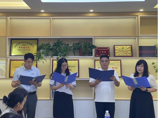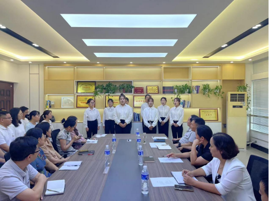 紧接着,窦雪霞带领全院教师重温了教师誓言。教师们齐声诵读,情感激昂,声音回荡在会议室中,进一步坚定了大家对教育事业的责任感和使命感。